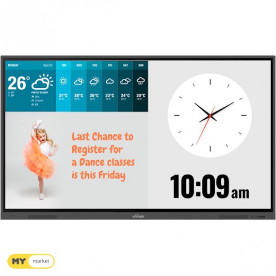 צגי הטאץ' האינטראקטיביים של VIVITEK ברזולוציית 4K הכולל מערכת הפעלה פתוחה Android המאפשרת התקנת אפליקציות והתאמת המסך לצרכי הארגון.